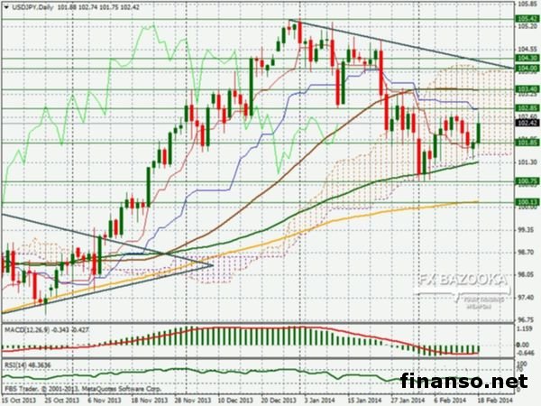Как передают представители брокер-компании FBS Markets корреспондентам авторитетного интернет-издания «Украина сегодня: finanso.net», у пары USD/JPY во вторник, 18 февраля, произошло восстановление до отметки 102.70. Причиной этому послужил увеличившийся аппетит к рискованным операциям после разглашения решения Банка Японии о том, что программа кредитования будет не только продлена, но и расширена.Пара доллар/иена ждет сигнала поддержки 101.50 на Форексе.В ближайшем будущем участники рынка Форекс ждут изменений в паре доллар/иена. Уже во вторник перспективы пары были весьма предсказуемы. Нацбанк сохраняет уверенный оптимизм по поводу развития экономики в стране, не обращая внимания на очень слабые статданные из Японии. Аналитики Форекс компании FBS Markets считают вполне очевидным тот факт, что увеличение налогов формирует весьма негативное влияние на экономику Японии. В такой ситуации рынки могут применить в курсе валютной пары возможное смягчение политики ЦБ уже в апреле 2014 года. Если это произойдет, то последствия для национальной валюты – иены – будут негативными. Как видим на графике, предоставленном ниже, показатель сопротивления пары USD/JPY расположился на уровнях 102.85, 103.40 и 104.00. Области поддержки мы видим на показателях 102.00, 101.53, 101.30 и 100.75. Если брать во внимание предположения специалистов Форекс и тот факт, что сегодня, возможно, «бычьи» импульсы смогут взять показатель 102.85, то у них будет прекрасный шанс шанс протестировать пару USD/JPY на отметке 104.00. Пара валют USD/JPY может вести торги в треугольнике. По мнению аналитиков компании, такое явление весьма распространено для этой валютной пары. А вот если пара опустится ниже показателя 101.50, то это будет хорошим сигналом для начала продаж. |