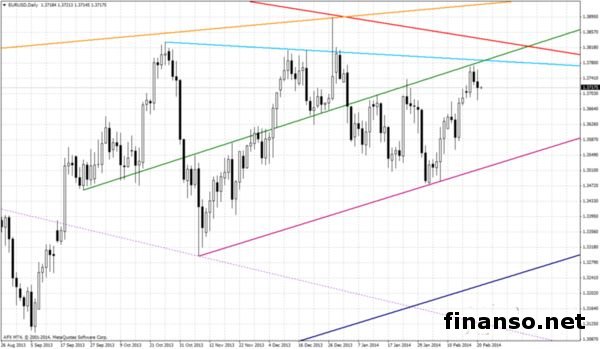 В пятницу эксперты международного валютного рынка Форекс составили обзор основных валют, по состоянию на 21 февраля 2014 года, передают журналисты издания «Украина сегодня: finanso.net». О том, какой прогноз составили ведущие специалисты рынка, рассказали эксперты журнала для инвесторов «Биржевой лидер».Курс доллара США.На предоставленном графике по валютной паре евро/доллар видно, что произошел отскок цены от линии поддержки-сопротивления, которая отмечена на графике зеленым цветом. Немного выше этой линии на графике расположена линия сопротивления, которая обозначается голубым цветом, и расположена в зоне максимумов октября и декабря 2013 года. Аналитики считают, что длинные тени на вчерашней свече сигнализируют о приблизительном равенстве сил «быков» и «медведей» на рынке. Таким образом, торговля на уровнях между 1,37 и 1,38 продолжается. Напомним, что на протяжении полугода происходит уже в третий раз, поэтому аналитики утверждают, что говорить об открытии позиций можно будет только после выхода стоимости за пределы этого диапазона. В свою очередь валютная пара фунт/доллар сегодня продолжает коррекцию, после мощного движения на прошлой неделе, и уже подбирается к уровню ретрейсмента Фибоначчи 38,2%. Эксперты считают, что после отскока от этого ретрейсмента возможен дальнейших рост. Но аналитики компании Arsenal Fx подчеркивают, что о продолжении тренда можно будет говорить только после того, как будет взят последний максимум на уровне 1,6822. В то же время пара доллар/иена по-прежнему продолжает торги в треугольнике, что хорошо видно на 4-часовом графике. Гипотенуза треугольника движется по направлению его верхней границы, которая обозначена оранжевым цветом. Эксперты считают, что если произойдет пробой этого уровня, то может начаться восходящий тренд до уровня нисходящего движения, которое на графике обозначено голубой линией. До тех пор рынку будет характерно боковое движение, и в таких условиях можно смело применять соответствующую тактику торговли от границ коридора. |