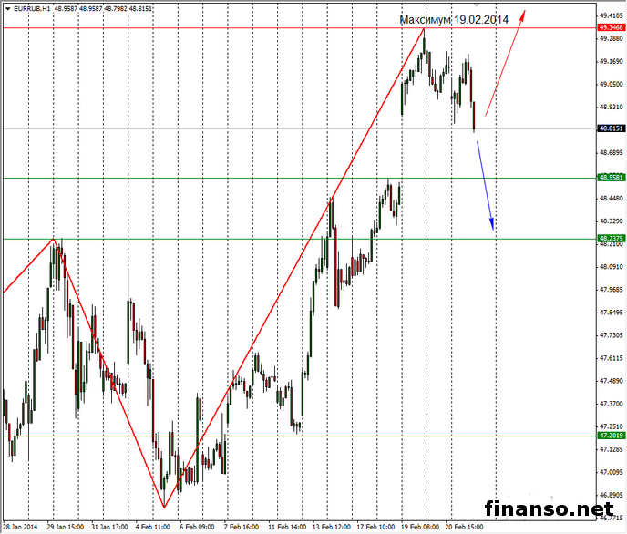 На 22 февраля Центробанк России установил курс евро, который составил 48,9497 рубля, по сравнению с предыдущим днем он снизился на 0,2478 рубля.На сегодня бивалютная корзина снизилась на 0,1578 рубля от предыдущего уровня и равна 41,6529 рубля. К концу торгов евро к доллару составил 1,3737 доллара, с начала американской сессии на Форексе снизился на 0,01%. Корреспонденты «Биржевого лидера» узнали от пресс-службы брокерской компании Arsenal-FX о причинах снижения курса. Слабая уязвимость стала фоном для снижения курса евро к рублю. Как сообщают журналисты «Украина сегодня: finanso.net», эксперты брокерской компании Арсенал FX объяснили, что сворачивание политики количественного смягчения (QE), которое проводится Федрезервом (ФРС) США, на устах у глав держав всего мира. Самое негативное влияние QE оказала на те государства, в которых рынки развиваются, но где присутствует дефицит бюджета и отрицательное сальдо платежного баланса. Для России сворачивание QE оказалось менее уязвимым, ведь эта страна имеет положительное сальдо. В этот же период валюта развивающихся стран потеряли более 20%. В последнее время на темпы развития мировой экономики снова оказывают влияние Европа и США. В текущем году происходит остановка темпов роста развивающихся рынков, и они уже не способствуют развитию мировой экономики. Корреспонденты «Украина сегодня: finanso.net» передают, что представители мировых банков советуют развивающимся государствам устранять дефицит бюджета, приводить в соответствие торговый баланс, приводить сальдо к положительному показателю. Снижение темпов роста мировой экономики отрицательно влияет и на экономику России, снижается экспорт, происходит отток инвестиций. Именно так считает Министерство финансов Российской Федерации. Резервный фонд даст возможность защитить российский бюджет и обеспечить независимость российского рубля от экономических и финансовых рисков. На снижении курса евро к рублю на Форексе трейдеры могут заработать.Журналисты раздела «Курсы валют» журнала «Биржевой лидер» обратились к аналитикам Академии трейдинга Masterforex-V, чтобы они проанализировали среднесрочное движение курса евро относительно рубля. Профессионалы рассмотрели график валютной пары евро/рубль на часовом таймфрейме. Возможна новая восходящая волна движения курса евро к максимуму 49,3468 от 19 февраля и движение вверх к достижению новых максимумов выше 49,5000 рубля. |