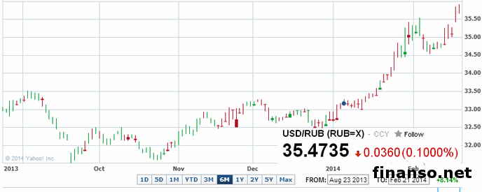Начиная с завтрашнего дня, Центральный банк России снижает курс доллара на 17 копеек, он составит 35,5112 рубля за один доллар, о чем передают корреспонденты «Украина сегодня: Finanso.net». В то же время курс евро будет снижен на 15 копеек, теперь он составит 48,7959 за один евро. В свою очередь аналитики «Биржевого лидера» журнала для инвесторов, проанализировав ситуацию заявили о том, что это является довольно явным и стабильным.Корректировка курса рубля.Многие эксперты сегодня говорят о том, что корректировка курса Центробанком является вполне нормальной и уместной после очередного послабляющего фактора. Кроме того, эксперты сейчас говорят о том, что необходимо не усиливать тот негативный поток информации, который способствует падению курса рубля. Отметим, что благоприятно на рубль повлияли события, которые произошли на последней неделе, а именно положительные эмоции от олимпиады в Сочи, приближающиеся налоговые выплаты. По мнению экспертов, налоговые выплаты в настоящее время сильнее всего влияют на динамику российского рубля по причине того, что на этой неделе будут выплачиваться акцизы и НДПИ, которые в целом составляют более двухсот миллиардов рублей, кроме того будут выплачены налоги на прибыль, что составит еще около 160 миллиардов рублей, что является очень положительным фактором для поддержки рубля. Помимо этого, сегодня не наблюдается никаких значительных событий на внешнем рынке, когда рубль получает поддержку на внутреннем рынке. Кроме того, если брать в расчет ситуацию на рынке нефти, то можно ожидать что в этом квартале рубль укрепится на уровне 33,5–34 рублей за доллар США. Что будет с рублем?Валюта РФ продолжает преподносить сюрпризы, в январе все те, кто волновался за свои сбережения, наблюдали за тем, как валюта плавно девальвировалась, в то время как стоимость евро и доллара повышалась. На протяжении января Центробанк говорил о том, что в дальнейшем все будет хорошо. А вот в настоящее время Россияне продолжают радоваться плавному укреплению доллара, но в то же время волнуются за свои кредиты в долларах, - рассказывают аналитики FBS Markets Inc. Отметим, что сегодня, по состоянию на 21:15, стоимость доллара составила 35,47 рубля. |