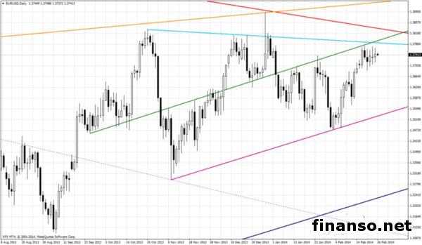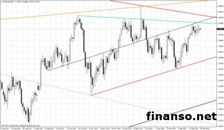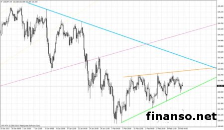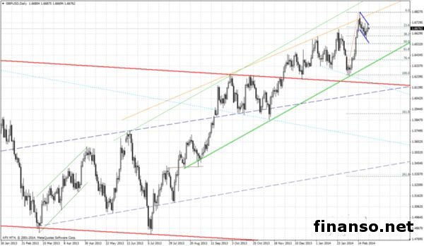 Аналитики Форекс составили обзор основных валютных пар Европы на 26 февраля, как пишут журналисты «Украина сегодня: Finanso.net». В том, какие были составлены прогнозы, разбирались ведущие эксперты журнала для инвесторов «Биржевой лидер».Курс доллара США.Эта пара не показывает никаких изменений, что видно на предоставленном графике. Как можно заметить, пара евро/доллар продолжает консолидироваться немного ниже линии поддержки-сопротивления, которая отмечена на графике зеленым цветом. Немного выше проходит линия сопротивления, которая отмечена голубым цветом, а также располагается зона максимумов октября-декабря 2013 года. Консолидация длится уже восьмой день, и предсказывать дальнейшее направление цены можно будет только после того, как пара покинет диапазон 1.3690-1.3770. Об этом рассказали аналитики компании Arsenal Fx. После длительного роста коррекция валютной пары фунт/доллар приобрела вид флага, который обозначен на графике синими линиями. Сегодня цена отбилась от ретрейсмента Фибоначчи 38.2% и начала свое движение вверх. В том случае есть цена сможет пробить верхнюю линию флага, а также вчерашний максимум на уровне 1,6727, стоит ожидать дальнейшего роста цены, но в то же время продолжение восходящего тренда будет только после пробития максимума на уровне 1,6822. В то же время валютная пара USD/JPY продолжает свое движение вверх, в пределах треугольника, который обозначен оранжевой и зеленой линиями. Аналитики советуют трейдерам воспользоваться соответствующей тактикой торговли для характерного в настоящее время движения и торговать от границ канала. А в случае прорыва верхней границы треугольника стоит ожидать роста цены до уровня 104.00-104.50. Если говорить о паре USD/CHF, то вчера цена отскочила от нижней границы треугольника в 60 пунктов, в котором пара движется уже больше одной недели. Аналитики отмечают, что если будет пробой верхней границы, то возможен рост цены до уровня 0,8950, на котором находится бывшая линия поддержки. Однако, по их мнению, в настоящее время сохраняется нисходящий тренд, и поэтому пробой нижней границы выглядит более вероятным. |