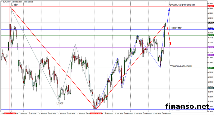 По окончании недели, в пятницу 28 февраля, курс евро на европейской сессии обновил очередной максимум и вырос до уровня 1,3823 доллара США, а после этого на протяжении все торговой сессии евро торговался в диапазоне от 1,3792 до 1,3823 долларов США, о чем пишут корреспонденты издания «