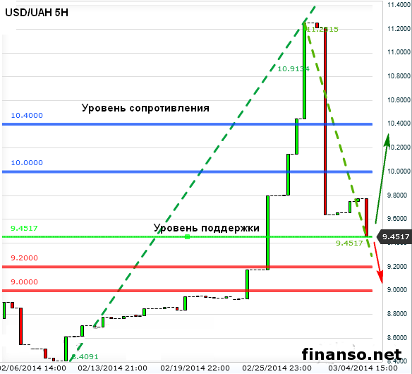 Еще не так давно резкое падение гривны казалось одной из главных проблем Украины, но сегодня эта проблема отступила на второй план ввиду нового конфликта. Конечно, сейчас все разговоры о войне - либо гражданской, либо вполне профессиональной, ведутся только политиками, и эти разговоры выглядят так, как будто это специально создается «дымовая завеса» как для населения, так и для внешних наблюдателей, чтобы все забыли о дефолте, о чем рассказали журналисты издания «Украина сегодня: Finanso.net». В том, какова действительно вероятность дефолта в Украине, разобрались корреспонденты журнала для инвесторов «Биржевой лидер».В конце 2013 года довольно много говорилось о том, что вероятность дефолта повышается, и эти разговоры подкреплялись Евромайданом: мол, отсутствие стабильности в государстве неизбежно приведет к дефолту. Однако попытки правительства запастись валютой в виде иностранных кредитов, в том числе российскими 15 миллиардами, говорили о том, что проблема глубже. После того как старая власть была свержена, и появилась новая, легитимность которой вызывает сомнения не только у граждан Украины, но и у России и стран Запада, призрак дефолта превратился в довольно реальную перспективу, особенно на фоне обострения отношений с Российской Федерацией. Конечно, никогда дефолт не являлся смертным приговором, но в этой ситуации, на фоне кризиса и обострения отношений с Россией, избежать его безболезненно не получится. Поэтому эксперты брокерской компании FBS выразили мнение о том, что, кроме прямой работы правительства Украины как с Россией, так и с Китаем не только на экономическом, но и на политическом уровне, вопреки миражу «интервенции» или «войны», у Украины другого выхода нет. Курс гривны глазами трейдеров Форекс.Аналитики Академии Masterforex-V предоставили 5-часовой график валютной пары гривна/доллар, на котором видно, что валютная пара продолжила коррекцию и сейчас торгуется на уровне 9,4517 гривны. По мнению экспертов, если данное движение продолжится, то целевыми уровнями станут уровни вблизи 9,2000 и 9,0000 гривен. А если продолжится долгосрочное движение, то целевыми уровнями станут 10,0000–10,4000 гривны. |