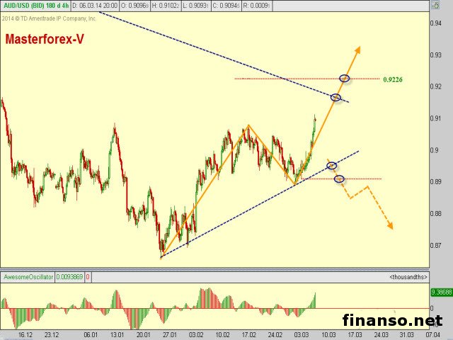 Статистические данные, представленные в отчете, оказывают значительную поддержку курсу австралийской валюты. Пара валют AUD/USD продолжает увеличивать стоимость и в данный момент располагается в зоне восходящей волны А/В с потенциалом Daily. Отработка показателей подволны а(С)/С еще не закончилась, поэтому важным значением сопротивления является линия нисходящего наклонного канала МФ, а также показатели Фибоначчи 0.9203/26.