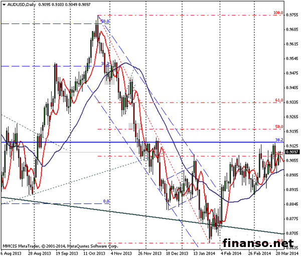 «В пятницу на прошлой неделе торговая сессия по паре AUD/USD завершилась увеличением котировок к уровню 0.9078, где пара валют уже располагалась несколько дней назад», - рассказали в понедельник, 24 марта, представители компании «FOREX MMCIS group» корреспондентам онлайн-издания «Украина сегодня: Finanso.net».