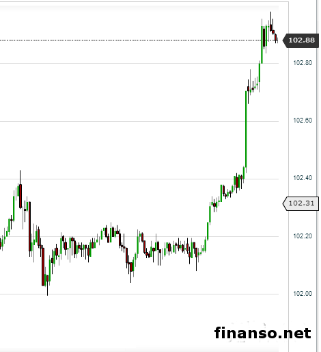 Пара USD/JPY на фоне таких новостей увеличила котировки и вела торги на отметке 102,90, набрав 0,70% к стоимости старта пятничной торговой сессии. Об этом журналистам онлайн-издания «Украина сегодня: Finanso.net» рассказали специалисты компании-брокера UFXMarkets.