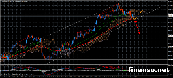 Пара AUD/USD, как и предполагали специалисты-брокеры компании ForexTrend, двинулась по возрастающей. Торговая область составила около 248 пунктов. Показатель цены Low снизился к минимальному уровню 0.9047, а показатель цены High расположился возле максимальной отметки 0.9295. За ситуацией на рынке Форекс следили журналисты онлайн-издания «Украина сегодня: Finanso.net».В понедельник, 31 марта, ожидается коррекция в рамках облака Ишимоку. В качестве альтернативы выступает продажа с пробитием показателя 0.9204. Пара AUD/USD будет находиться в состоянии коррекции. Стоимость пары ведет торги на отметке облака Ишимоку и скользящих средних EMA (50 и 100), что ясно говорит о коррекционном состоянии. Как считают аналитики компании ForexTrend, показатель MACD средние, как и импульсы OsMA, находятся под нулевым уровнем и продолжают падать. Это свидетельствует о дальнейшем падении цены. |