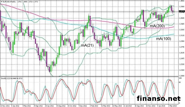 Пара валют евро/доллар к концу торговой сессии в Америке находилась около уровня 1.3790. Пара фунт/доллар к завершению торгов остановилась в районе показателя 1.6630. Курс пары валют доллар/иена расположился вблизи отметки 103.65. Об этом корреспондентам издания «Украина сегодня: Finanso.net» сообщили представители компании брокеров FIBOGroup.Эксперты Форекс подчеркивают, что слухи о непринятии ЕЦБ решения о смягчении денежно-кредитной политики лишь усиливают спрос на рисковые инструменты. Что касается индексов, то Dow Jones в Нью-Йорке увеличился на 74.95 пункта, что в процентном эквиваленте составляет 0.46%. Индексу S&P 500 также характерен рост на 13.18 пункта, что в процентах равно 0.70%. Индекс Nasdaq вырос на 69.05 пункта, то есть набрал еще 1.64%. Индекс Франкфуртской фондовой биржи Xetra DAX возрос 1 апреля на 47.80 пункта, в процентах – на 0.50%. Лондонская фондовая биржа зафиксировала рост индекса FTSE 100 на 54.24 пункта (+0.82%). Цена золота снизилась до показателя 1277.40 американских доллара за тройскую унцию. Стоимость техасской нефти в Нью-Йорке стала меньше на 1.89 доллара и расположилась на отметке 99.69 доллара США за баррель. Индекс PPI в Канаде в феврале вырос на 1.0% и на 1.8% за годовой период. ISM индекс в Америке в марте составил 53.7. На строительство в Америке затрачено в феврале на 0.1% больше предыдущего показателя. |