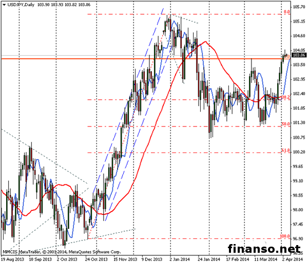 «Вчера торговые сессии по паре валют USD/JPY закрылись увеличением котировок к уровню 103.89. При этом максимальное значение последних двух месяцев возросло до отметки 104.08, однако закрепиться выше пара так и не сумела, т. к. на рынке еще не были решены вопросы касаемо состояния экономики Америки», - рассказали специалисты брокерской компании «FOREX MMCIS group» корреспондентам издания «Украина сегодня: Finanso.net».