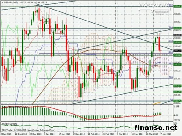 Пара валют USD/JPY дошла до отметки 103.00, где сумела найти поддержку и восстановиться к показателю 103.25. На прошлой неделе американский доллар не закрепился выше уровня 104.00 по причине вышедшей статистики по занятости населения в производственном секторе в Америке. Увеличение количества занятого населения оказалось вполне хорошим и составило 192 тысячи. Уровень безработицы в США не снизился. В итоге пара валют USD/JPY отскочила по нисходящей от верхней точки восходящего канала. Об этом корреспондентам издания «Украина сегодня: Finanso.net» рассказали представители брокерской компании FBS.Аналитики Форекс предполагают, что эта неделя будет весьма напряженной для продавцов USD/JPY. Во вторник, 8 апреля, состоится первое апрельское заседание Банка Японии. Судя по прогнозам, Банк Японии не изменит финансовую политику. |