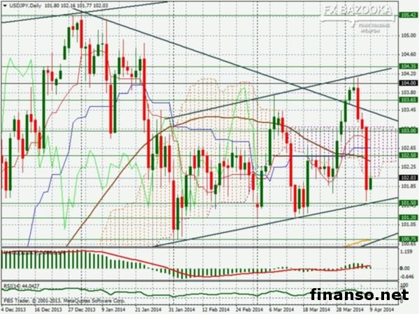Что касается положения дел на валютном рынке Форекс сегодня, 9 апреля, то на Н4 образовался «бычий молот», что помогло американскому доллару восстановиться до нижней линии дневного Облака в районе 102.