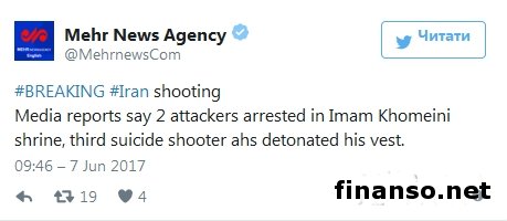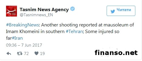 Как удалось выяснить корреспондентам «Украина сегодня: Finanso.net», в сообщении говорится еще об одной стрельбе в мавзолее имама Хомейни, южнее Тегерана, в результате «пока несколько раненых». По информации еще одного онлайн-издания Mehr, это нападение было совершено тремя вооруженными мужчинами. Двоих задержали, а третий подорвал на себе пояс, начиненный взрывчаткой. Сообщается о жертвах вооруженного нападения.При этом, по информации, поступившей из государственного агентства IRNA, террорист-смертник подорвал себя не у мемориального комплекса, а вблизи местного банковского учреждения, рядом с мавзолеем иранского имама. В результате нападения, по предварительным данным, один человек погиб, а пятеро получили ранения. Напомним, расположенный к югу от Тегерана мавзолей Хомейни является мемориальным комплексом, сооруженном и посвященном лидеру исламской революции и первому главе Ирана аятолле Хомейни. Напомним также, что сегодня с утра в парламенте Ирана произошла стрельба. Об этом сообщило агентство Tasnim. Неизвестным была открыта стрельба у входа в здание парламента, когда депутаты уже находились на заседании. В результате вооруженного нападения, сообщают масс-медиа, ранения получили двое сотрудников охраны. В то же время издание Fars сообщило о четырех раненых-бойцах Стражей исламской революции и двух гражданских. По свидетельству иранского парламентария А. Ранджбарзада, стрелявший пытался скрыться в близлежащих домах, однако его задержали. При этом по заявлению еще одного парламентария, Э. Хазрати, в нападении на парламент Ирана принимало участие три человека. Они были вооружены автоматами Калашникова и пистолетом. Э. Хазради свидетельствовал, что нападавшие укрылись в одном из кабинетов здания. |