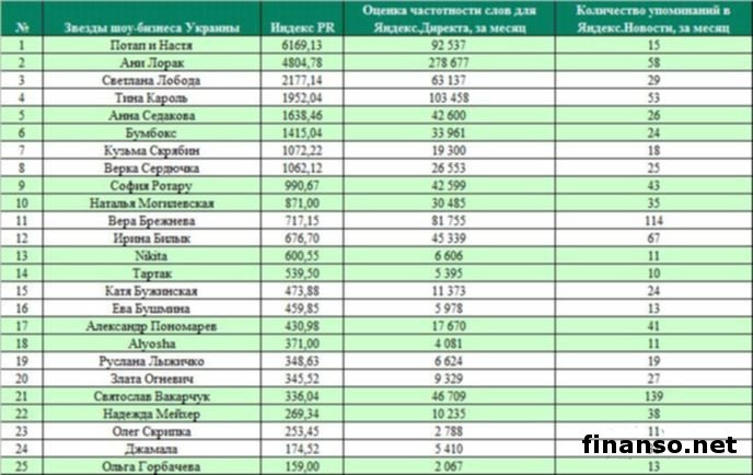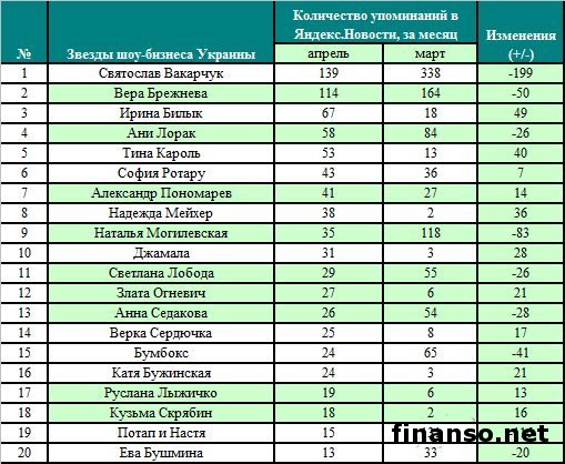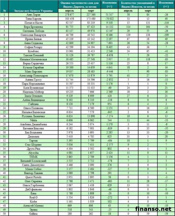 Украина: определены 50 самых популярных звезд шоу-бизнеса в ИнтернетеКатегория: Культура