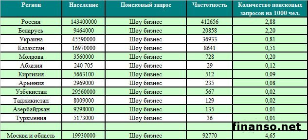 «Работа пиар-поддержки и востребованность у поклонников являются важным составляющим элементом рейтинга популярности звезд», - информируют корреспонденты издания «Украина сегодня: Finanso.net».Популярность в сети Интернет звезд экрана.Согласно проведенному рейтингу издания «Биржевой лидер», за основу брались критерии поисковой системы Яндекс: - рассчитанная за месяц с помощью сервиса wordstat.yandex.ru частота слов для Яндекс.Директа; - рассчитанная с помощью агрегатора Яндекс.Новости число упоминаний за этот же период в интернет-изданиях и информагентствах о звездах шоу-бизнеса; - регионом оценки является Украина. Благодаря таланту, целеустремленности и терпению, самой популярной звездой украинского шоу-бизнеса по–прежнему остается Ани Лорак, собирающая на своих концертах миллионы фанатов. Значительно притягивает интересы общественности и пробующая себя не только в роли певицы, но также и в роли телеведущей и актрисы Тина Кароль, которая взошла на вторую строчку популярности. Радует и вдохновляет и россиян, и украинцев, занимая по популярности третье место, дуэт «Потап и Настя». Уровень упоминаемости в агрегаторе Яндекс.Новости той или иной звезды шоу-бизнеса является одним из важнейших показателей эффективной РR-раскрутки. На протяжении марта 2014 г. первые три места по числу упоминаний в интернет-изданиях заняли: 1- С. Вакарчук (139 упоминаний); 2 – В. Брежнева (114 упоминаний); 3 – И. Билык (67 упоминаний). Самые высокие показатели по количеству запросов о звездах шоу-бизнеса на тысячу жителей в апреле 2014 г. (исходя из таблицы) в России, Беларуси и Украине. Число запросов, которое делится на количество упоминаний за один и тот же месяц в электронных средствах информации, дает возможность рассчитать самый эффективный пиар в глобальной сети Интернет (во внимание принимается не меньше 10 упоминаний за месяц). Исходя из самых высоких показателей эффективности, десятку лучших звезд шоу-бизнеса можно представить следующим образом: дуэт «Потап и Настя», А. Лорак, С. Лобода, Т. Кароль, А. Седакова, группа «Бумбокс», К. Скрябин, В. Сердючка, С. Ротару, Н. Могилевская, подтвердив этим самым влияние на пиар знаменитостей электронных средств информации. |