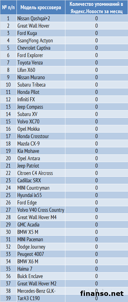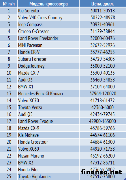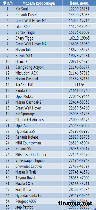 Определены 75 самых популярных кроссоверов у украинцев в апреле 2014 г.Категория: Украина