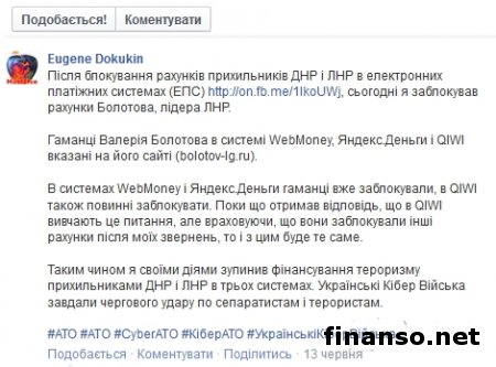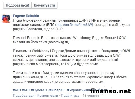 WebMoney заблокировали счета ЛНР: результат финансирования террористовКатегория: Украина