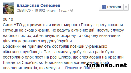 Селезнев: боевики продолжают обстреливать позиции сил АТОКатегория: Украина