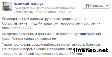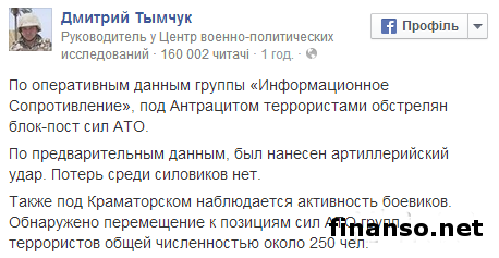 К позициям сил АТО под Краматорском приближаются около 250 террористов – ТымчукКатегория: Украина