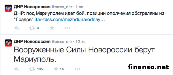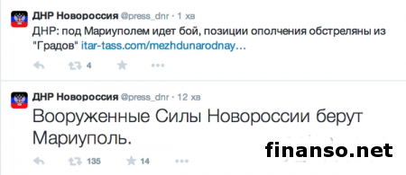 Показательно, что сообщение о штурме Мариуполя было опубликовано перед тем, как террористы сообщили, что их позиции обстреляла украинская армия. Так, информация о нарушении террористами перемирия и обстреле позиций близ Мариуполя появилась в социальных сетях около 22:30. Очевидцы и журналисты, которые находились на месте событий, начали подтверждать начало боев фото- и видеоматериалами. В частности, журналист BBC Фергал Кин сообщил о приближающихся к Мариуполю взрывах, а другой журналист Уилл Вернон подтвердил его слова фотографиями. В то же время представители батальона «Азов» отметили, что военные действия проходят в районе поселка Широкино, и добавили, что в настоящее время появились жертвы среди мирного населения. Местное издание 0629 со ссылкой на очевидцев сообщило о том, что около 22:30 в районе «Восточном» были слышны залпы тяжелых орудий. Издание также отметило, что по позициям украинских военнослужащих ведут огонь российские войска, но опасности для Мариуполя нет, людей просто хотят запугать. Около 23:00 в батальоне «Азов» сообщили о том, что по окраинам Мариуполя ведут огонь системы залпового огня «Град». Прямой наводкой стреляли по блокпосту на въезде в город. Горели строения в районе заправки «ТНК», там же слышно автоматные очереди. Позже заправка взорвалась. Сообщается, что обстрелы ведутся со стороны Новоазовска, который находится под контролем боевиков ДНР. Мнение Авакова.Как сообщил Арсен Аваков на своей странице в социальной сети Facebook, Мариуполь есть и всегда будет украинским городом. Туда были подведены подкрепления, в частности первая оперативная бригада Национальной гвардии, поэтому не нужно паниковать. У военных есть решительность и готовность отстоять Мариуполь. Глава МВД добавил, что те 16 выстрелов из установки «Град» с территории Российской Федерации являются скотством и нарушением режима прекращения ведения огня со стороны Российской Федерации. |