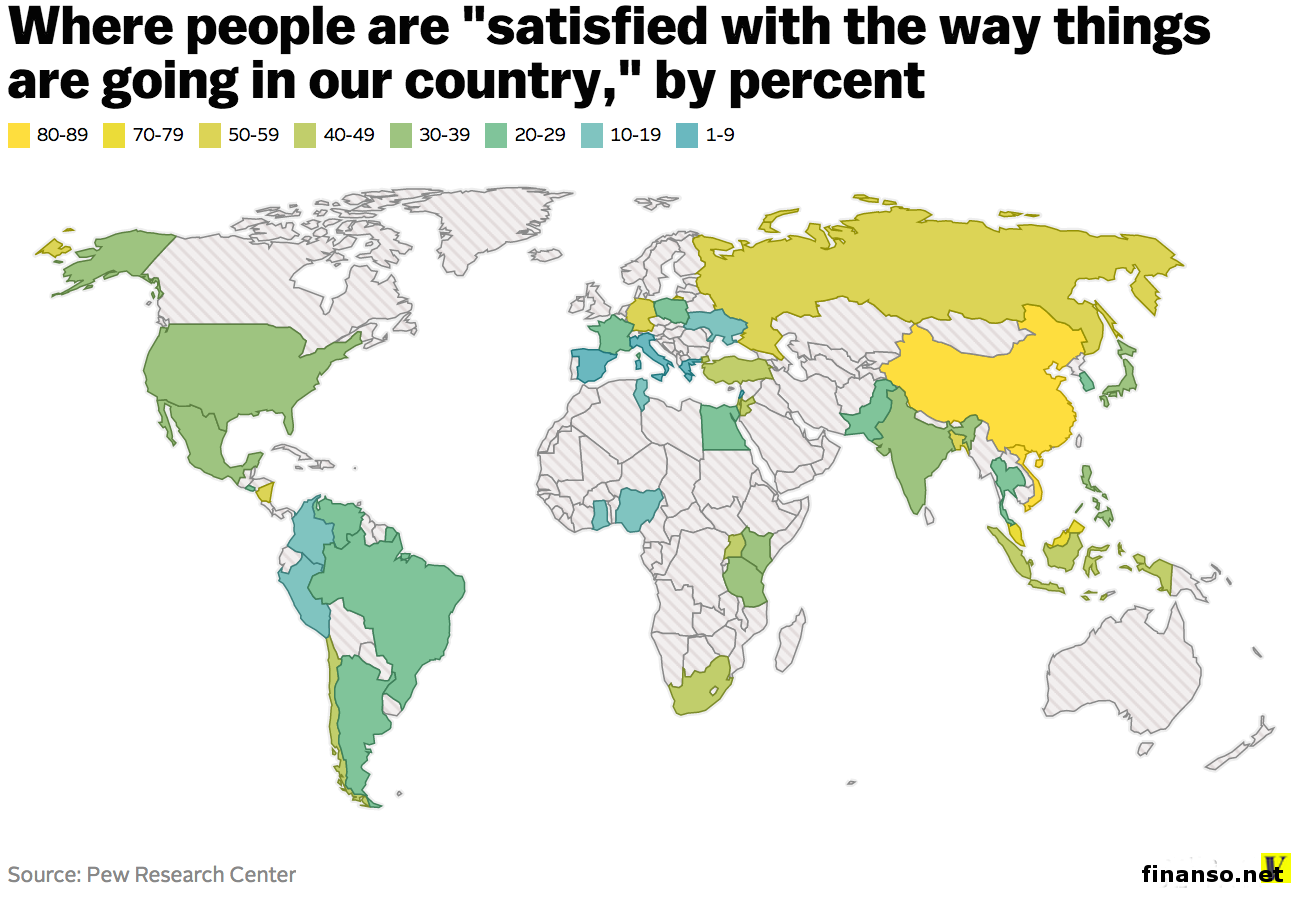 Примерно на том же уровне находятся оценки нигерийцев, тунисцев и колумбийцев. Исследователи связывают данные результаты с состоянием экономик данных стран. Отмечается, что только 5% граждан Украины отметили, что в Украине с экономикой все обстоит нормально, а более 93% опрошенных уверены в том, что дела плохи. Около 35% украинцев отметили, что в этом году их финансовое положение улучшилось, 21% остался на привычном уровне заработка, а 32% жаловались на то, что их заработок уменьшился. В то же время граждане Российской Федерации, несмотря на введение целого ряда санкций, значительный отток капитала по причине агрессии по отношению к Украине, оказались довольны своей страной не меньше, чем жители Германии. Так, более половины граждан Российской Федерации положительно оценивают жизнь в своем государстве, а 44% уверены, что экономика РФ в полном порядке. Как отмечают аналитики Pew Reaserch, в 2013 году, когда российские войска не воевали с Украиной, а страны Запада не вводили экономические санкции, людей, которые были довольны экономикой Российской Федерации, было на 11% меньше, чем на сегодняшний день. Ситуация в Украине.Напомним, что в середине апреля началось проведение антитеррористической операции на территории Украины, направленной против представителей так называемых Луганской и Донецкой народных республик, которые произвели незаконный захват власти на территории региона. В результате вооруженного противостояния погибло множество людей, а инфраструктура региона получила значительные повреждения. На ее восстановление теперь потребуются колоссальные средства. 24 августа на территории Украины появились регулярные российские войска, что значительно усложнило задачу бойцов АТО. Через некоторое время в Минске была достигнута договоренность о прекращении ведения огня в зоне АТО, но террористы и войска РФ предпочитают ее не придерживаться. |