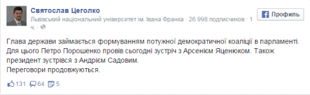 Лидеры «Блока Порошенко» проводят консультации по созданию коалиции с «Народным фронтом»Категория: Украина