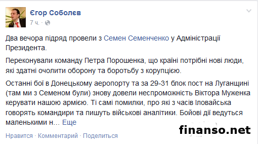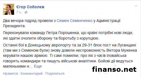 Глава Украинского государства Петр Порошенко намерен уволить начальника Генерального штаба Виктора Муженко и генерального прокурора Виталия Ярему, о чем на своей странице в социальной сети Facebook сообщил народный депутат Верховной Рады Украины от «Самопомочи» Егор Соболев. Как удалось выяснить корреспондентам издания «Украина сегодня: Finanso.net», в своем аккаунте Егор Соболев сообщил: «Убеждали команду Петра Порошенко, что государству нужны новые люди, которые способны возглавить оборону и борьбу с коррупцией в стране. Несостоятельность Виктора Муженко управлять нашей армией снова была подтверждена последними боями в Донецком аэропорту и за 29-31 блокпост на Луганщине. Борьба со смертельно масштабной коррупцией на внутреннем фронте продолжает и дальше имитироваться. Генеральный прокурор Украины Виталий Ярема развил бурную активность лишь после того, как увидел угрозу отставки Верховной Радой. На Банковой не один час пытались донести, что стране срочно нужны Генеральный прокурор и начальник Генерального штаба, которые смогут обеспечить результат... Наконец-то сегодня услышали ответ, что президент Украины Петр Порошенко готовит кардинальные кадровые изменения на обоих фронтах». О чем рассказал Соболев?В это же время Соболев пояснил: «Мы с Семеном Семенченко провели два вечера подряд в Администрации президента. Убеждали команду Петра Порошенко, что Украине нужны новые люди, которые способны возглавить оборону и борьбу с коррупцией». При этом он добавил, что последние атаки, которые проходили в аэропорту Донецка, доказали, что Виктор Муженко не умеет управлять украинской армией. Кроме того, народный депутат от «Самопомочи» Егор Соболев пояснил: «Повторяются все те самые ошибки, о которых со времен Иловайска пишут военные аналитики и говорят командиры. На Донбассе боевые действия ведутся маленькими нескоординированными группками военнослужащих, надерганных из разных воинских частей. В это же время огромное количество наших войск дальше приковано к блокпостам, где их как мишени со все большей активностью накрывает «Градами» террористов и даже еще более серьезными машинами. Центральное командование и разведка дальше пребывает в параличе. Типовой приказ от генералов Муженко в бою: «Держитесь». Также народный депутат Украины акцентировал свое внимание и на продолжение процветания коррупции в государстве. По его словам, Генпрокурор Виталий Ярема «развил бурную активность лишь под угрозой отставки парламентом». |