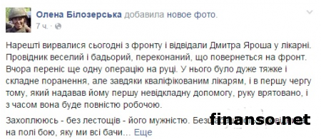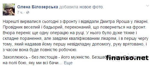 Ярош перенес вторую операцию и рассказал подробности раненияКатегория: Украина