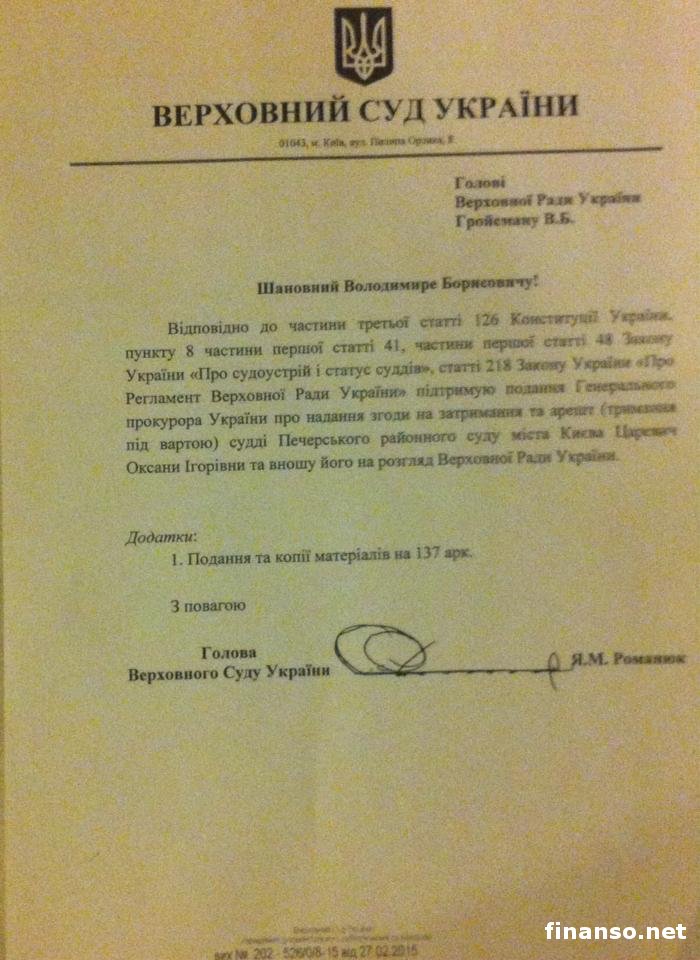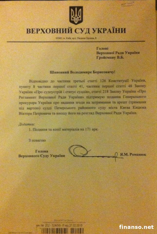Так, в своем сообщении Лещенко отметил: «Виктор Кицюк, Сергей Вовк, Оксана Царевич. Запомните фамилии этих трех судей. В понедельник вечером, 2 марта текущего года, в украинский парламент поступило согласие, подписанное председателем Верховного суда Украины Я. Романюком, на их арест. Голосование по этому поводу будет проходить в Раде уже в ближайшие дни. В случае если они уйдут – это будет провалом для всех спецслужб Украинского государства». Как передают корреспонденты издания «Украина сегодня: Finanso.net», народный депутат Украины Сергей Лещенко также обнародовал соответствующие документы с подписью главы Верховного суда Украины Ярослава Романюка. В чем подозревают судей?Насколько известно, Виктор Шокин, являющийся председателем Генеральной прокуратуры Украины, направил в парламент Украины представление о взятии под стражу судей Сергея Вовка, Виктора Кицюка и Оксаны Царевич. Как известно, эти судьи подозреваются в умышленном нарушении закона, злоупотреблении служебным положением, а также вынесении неправосудных решений. Ранее уже сообщалось, что судьям Кицюк и Царевич уже было объявлено о подозрении в совершении преступлений. Насколько известно, Вовк, Царевич и Кицюк выступали судьями в делах «Автомайдана» и вынесении приговоров участникам движения. Отметим, Царевич находилась среди судей, которые вели первое дело экс-министра МВД Юрия Луценко. В деле об убийстве Евгения Щербаня следователями-судьями также были Кицюк и Царевич. Примечательно, что тогда обвинение было выдвинуто Юлии Тимошенко. Вовк вел дело Луценко. Он же и вынес обвинительный приговор по делу бывшего министра внутренних дел Украины Юрия Луценко. Напомним, ранее в феврале месяце текущего года генеральный прокурор Украины Виктор Шокин направил запрос в Верховную Раду Украины насчет задержания и взятия под стражу трех судей Печерского суда Киева – Виктора Кицюка, Оксаны Царевич и Сергея Вовка. |