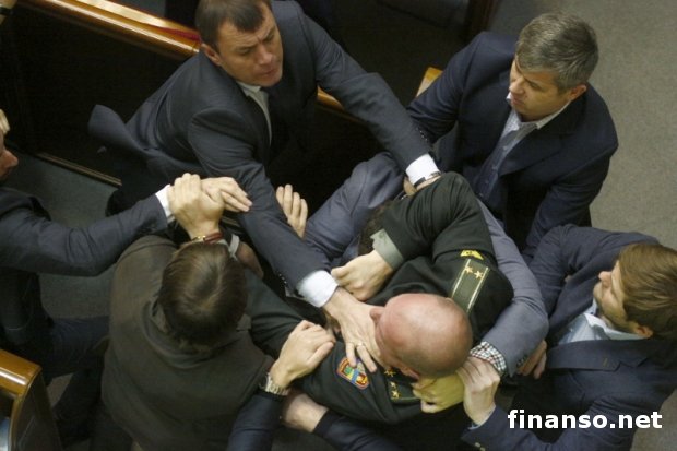В потасовке принимали участие следующие действующие лица: глава фракции Радикальной партии Олег Ляшко, глава «Воли народа» Игорь Еремеев, народные депутаты Сергей Мельничук, Алексей Ленский, Алексей Кириченко, Игорь Мосийчук, Андрей Лозовой. В ходе драки нардеп от Радикальной партии Андрей Лозовой немного пострадал – на его лице была видна кровь. Радикальная партия Ляшко против бывшего «айдаровца» Сергея Мельничука. Напомним, сегодня в зале Верховной Рады произошла драка между нардепами Радикальной партии во главе с Ляшко, с бывшим однопартийцем, экс-командиром «Айдар» Мельничуком. Так, глава Радикальной партии Олег Ляшко, вместе со своими однопартийцами Сергеем Рыбалкой, Игорем Мосийчуком и другими депутатами вступили в потасовку с ранее исключенным членом их партии Мельничуком. Напомним, исключение последнего из Радикальной партии Украины состоялось 5 февраля, а с сегодняшнего дня Мельничук вошел в состав группы «Воля народа». Через некоторое время к потасовке нардепов присоединился народный депутат из фракции «Народный фронт», бывший комбат Юрий Береза, он предпринял попытку разнять дерущихся Ляшко и Мельничука. Спикер парламента Владимир Гройсман в это время с трибуны призывал депутатов успокоиться и сесть на свои места. Драка Ляшко с бывшим однопартийцем.Причину произошедшей драки между Мельничуком и Ляшко пояснил депутат партии «Свобода» Юрий Левченко. Он сказал, что причина их ссоры была в том, что Ляшко исключил из своей фракции Мельничука. А Мельничук, в свою очередь, вступил в депутатскую группу «Воля народа», которую возглавляет Игорь Еремеев. Этой группе как раз не хватало одного депутата, чтобы не утратить статус депутатской группы. В группе на тот момент осталось восемнадцать депутатов, при том, что минимально необходимое количество таковых – девятнадцать. И Мельничук как раз и стал недостающим девятнадцатым членом группы. Игорь Еремеев, в свою очередь, бросился со всех сил защищать нового единомышленника. В итоге потасовка получилась масштабной, продолжительной и ожесточенной. |