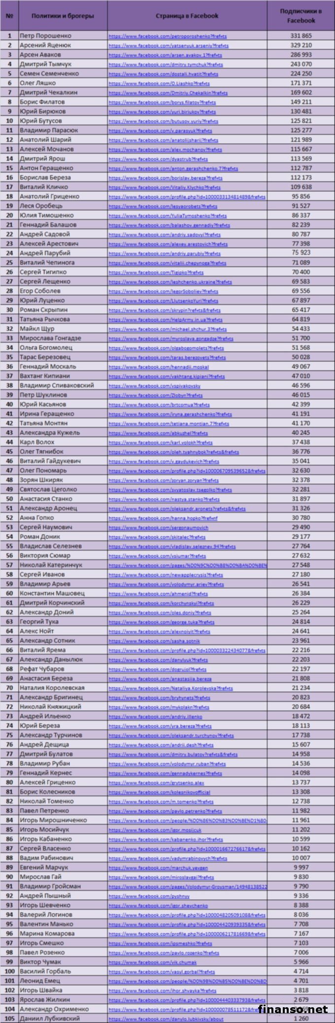Определены самые популярные политики и блогеры Украины в Facebook в марте 2015-гоКатегория: Украина