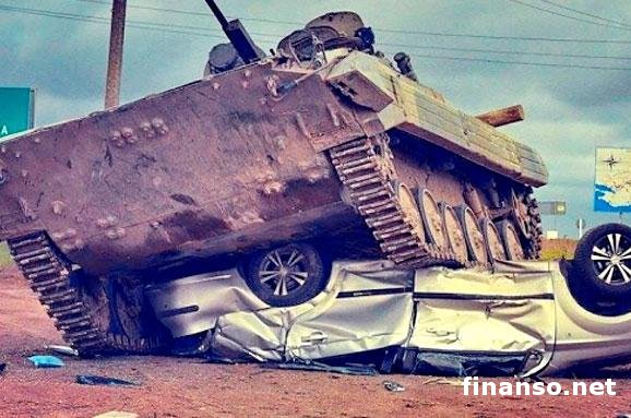 Как удалось выяснить корреспондентам издания «Украина сегодня: Finanso.net», в результате наезда погибли двое людей. Сообщается, что тринадцатого апреля текущего года в Донецкой области в городе Шахтерск танк боевиков самопровозглашенной Донецкой народной республики совершил наезд на гражданское транспортное средство. Вследствие инцидента двое людей погибли. ПДД нарушил гражданский автомобиль - «полиция» ДНР.В соответствии с данными местных жителей, данный факт был зарегистрирован так называемой «полицией» Донецкой народной республики как «выезд гражданского транспортного средства на встречную полосу, в результате чего и произошло столкновение с военной техникой ДНРовцев». Помимо этого «полицейскими» террористической организации был составлен соответствующий протокол. Аналогичный случай.Напомним, ранее в субботу, 14 марта текущего года, издание «Украина сегодня: Finanso.net» уже сообщало, что в центре оккупированного Донецка по улице Артема промчалось пять единиц бронетехники. При этом одна из бронемашин наехала на легковое транспортное средство. Как сообщалось это дорожно-транспортное происшествие произошло в районе ТРЦ «Грин-плаза». Немного позже по свидетельству очевидцев стало известно, что легковой автомобиль, как и бронетехника, принадлежали пророссийским террористам. Очевидцы также рассказали, что этот автомобиль перекрывал дорогу на повороте. Также они сообщали, что на месте происшествия валяются противошоковые ампулы и кровь. В результате наезда танка на легковой автомобиль SMA C51, по данным Lb.ua, пострадали водитель и пассажиры этой легковушки. В результате происшествия карета скорой помощи увезла пострадавших в тяжелом состоянии в одно из медицинских учреждений города. На момент происшетсвия их дальнейшая судьба была неизвестна. Также неизвестно точное число пострадавших от этого ДТП. Также напомним, что 16 марта 2015 года в Константиновке МТ-ЛБ, которым управляли украинские военные, наехал на женщину с двумя детьми, в результате чего погибла 8-летняя девочка. Второй ребенок, который был в коляске, не пострадал, его мать была госпитализирована в тяжелом состоянии. |