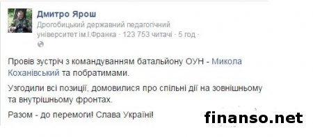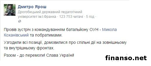 ПС и «ОУН» теперь будут сотрудничать на фронтах – ЯрошКатегория: Украина