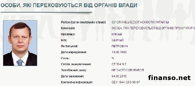 СБУ объявила в розыск нардепа Сергея КлюеваКатегория: Украина