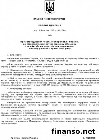 Своим распоряжением правительство Украины перенесло завершение призыва на срочную военную службу в Вооруженные силы Украины с мая месяца на конец июня.