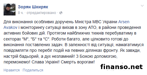 Аваков отправил Шкиряка в зону АТО в районы активных боевКатегория: Украина