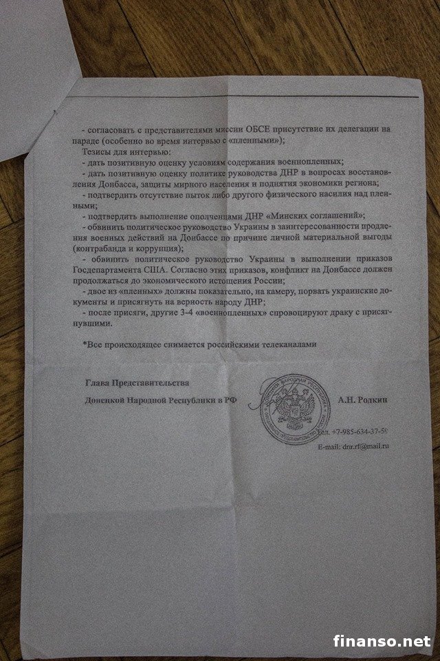 Пророссийские террористы намерены провести 24 августа в Донецке постановочный парад украинских военнопленных. Такое сообщение обнародовал в соцсети «Фейсбук» центр сбора информации о террористах «Миротворец». Как выяснили корреспонденты издания «Украина сегодня: Finanso.net», террористической организации ДНР поступило указание из Москвы провести 24 августа 2015 г. парад «военнопленных».В сообщении говорится, что в этом качестве рекомендуется использовать «не засветившихся боевиков». В оказавшемся в распоряжении «Миротворца» документе террористов ДНР указывается, что перед камерами российского телевидения ряженые военнопленные должны порвать украинские документы. В «Миротворце» также отметили, что, несмотря на другое время, методы остались прежними. Как СС в гитлеровской Германии, так и НКВД СССР в 40-50-х годах 20 столетия на Западной Украине любили пользоваться такими приемами. Указанное «действо» должны снимать российские телеканалы.Необходимо подчеркнуть, что в представленном общественниками документе детально расписываются действия боевиков, а указанное «действо» должны снимать российские телеканалы. Напомним также, что, по сообщению, поступившему накануне от журналиста Алексея Мацуки, к празднованию трех августовских дат (Дня независимости Украины, Дня города и Дня шахтера) террористами на Донбассе готовятся массовые провокации. На оккупированной территории для этого проводятся тренировки с фосфорными боеприпасами. Прямо сейчас в районе Моспино проходят тренировки с фосфорными зарядами. «На праздники ожидаются провокации», - рассказал Мацука. Из-за угрозы их жизни он призвал находящихся на Донбассе украинцев не посещать мероприятия, организуемые боевиками. Напомним также, что, как заявил недавно секретарь СНБО Александр Турчинов, РФ занимается на Донбассе подготовкой кровавых терактов. Российские спецслужбы подбирают на оккупированной территории места массового скопления людей, среди которых объекты инфраструктуры, жилые дома, детские сады, учебные заведения, где они готовятся отрабатывать сценарии будущих терактов. Руководство РФ, по его словам, пытается таким образом довести число жертв среди мирных жителей Донбасса до числа погибших в результате аварии «Боинга». Это делается с целью обвинить в преступлениях Киев и инициировать привлечение украинского политруководства к ответственности на международном уровне. |