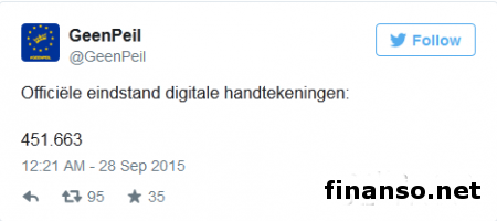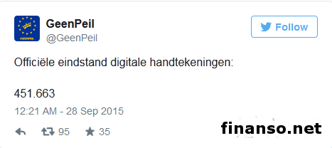 В воскресенье, 27 сентября, на своей странице в социальной сети «Твиттер» инициативная группа GeenPeil сообщила, что в Нидерландах собрали необходимое количество подписей для проведения консультативного референдума относительно ратификации Соглашения об ассоциации с Украиной.