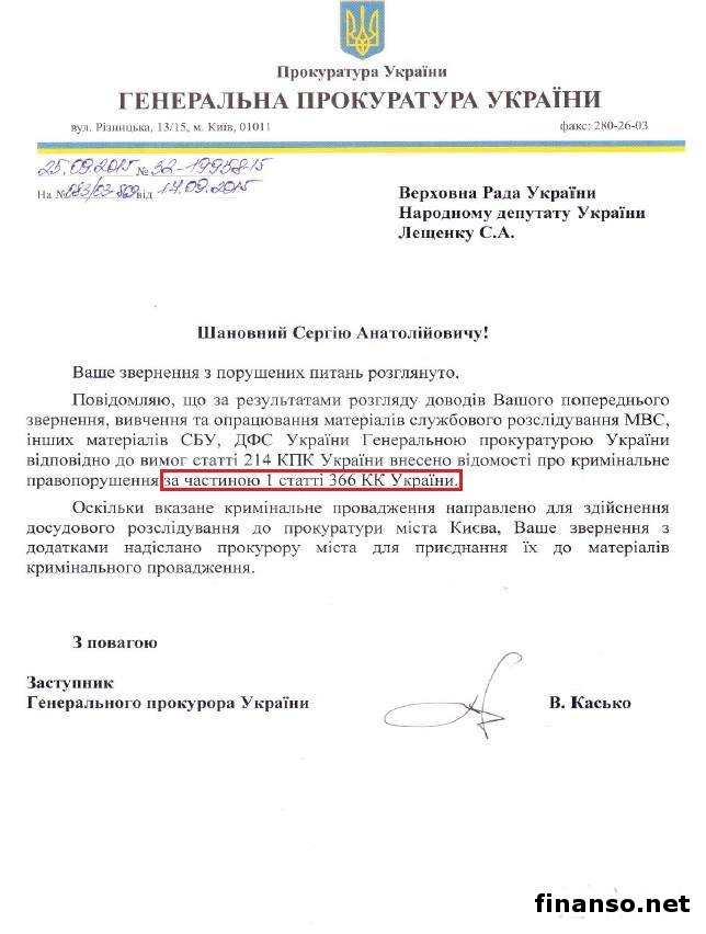 В отношении Елены Тищенко, уволившейся недавно с должности руководителя управления МВД Украины, по возврату активов, приобретенных незаконным путем, начато уголовное производство о подлоге. Об этом на своей странице в соцсети «Фейсбук» написал украинский парламентарий Сергей Лещенко. Этими событиями интересовались корреспонденты издания «Украина сегодня: Finanso.net».По сообщению Лещенко, он получил официальное подтверждение, что в отношении бывшего должностного лица МВД открыто уголовное производство по признакам статьи, карающей за служебный подлог. Депутат при этом подчеркнул, что названной статьей предусмотрено наказание за внесение должностным лицом в официальные документы заведомо ложных сведений, составление заведомо ложных сведений или иную подделку таких документов. Уголовное производство в отношении Елены Тищенко было открыто по результатам депутатского обращения Сергея Лещенко в ГПУ, текст которого он также обнародовал в соцсети. Статья обвинения предусматривает виновному штраф или ограничение свободы до трех лет.Если вину бывшей подчиненной Авакова докажут, то Тищенко может грозить штраф или ограничение свободы сроком до трех лет с лишением права работать на определенных должностях до трех лет. Аваков подписал заявление об отставке Тищенко 18 сентября. Свой уход с должности чиновница пояснила тем, что «критически коррумпированной» остается украинская правоохранительная система и органы юстиции, которые не готовы к возвращению активов, приобретенный преступным путем представителями режима Януковича. По мнению же Сергея Лещенко, ее добровольный уход был «попыткой замять ситуацию со служебным подлогом, поскольку только вопросом времени было дальнейшее пребывание Тищенко на этой должности». Как ранее уже сообщалось, бывший руководитель управления МВД по обеспечению возврата активов, полученных преступным путем Елена Тищенко в комитете украинского парламента работала меньше года, а все остальное время (восемь лет) проживала в Лондоне. Об этом сообщил на своей странице в «Фейсбуке» украинский депутат Сергей Лещенко. По сообщению Лещенко, на госслужбе Тищенко значилась как специалист комитета парламента на протияжении девяти лет - с марта 2005 по апрель прошлого года. По свидетельству политика, выходит, что из девяти лет госслужбы Тищенко провела восемь лет не на госслужбе, а в Лондоне, во Франции и московском СИЗО. Лещенко в связи с этим выразил свое недовольство, будучи также членом упомянутого комитета, что Тищенко назначили на должность, где ей предстояло отвечать за сотрудничество со спецслужбами государств по возвращению украденных активов. |