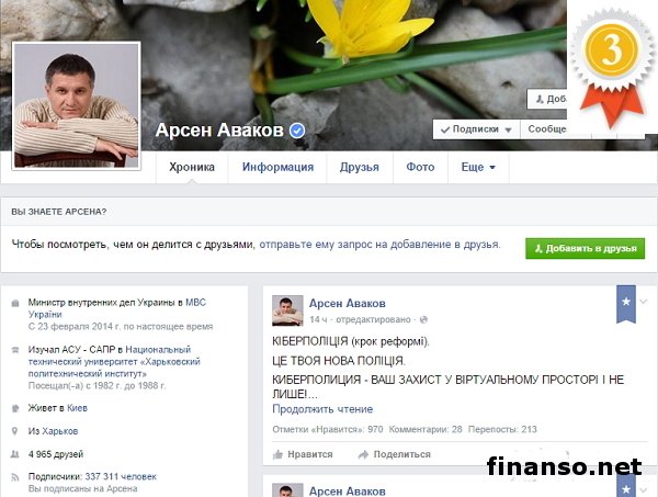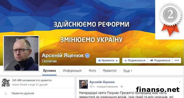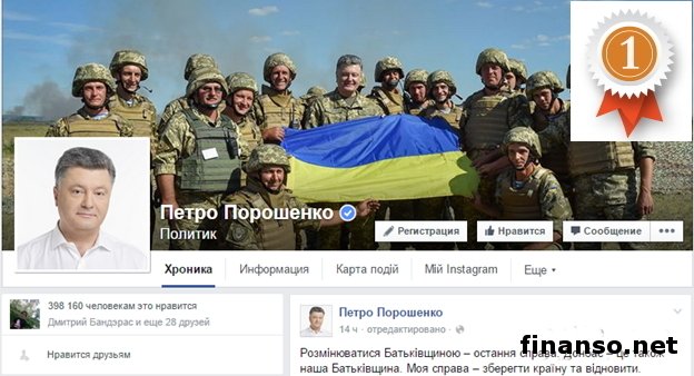 Названы ТОП-аккаунты политиков, блогеров Украины в FacebookКатегория: Украина