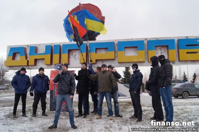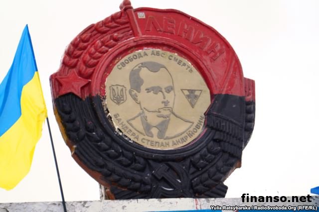 В Днепропетровске активисты установили Бандеру вместо ЛенинаКатегория: Украина