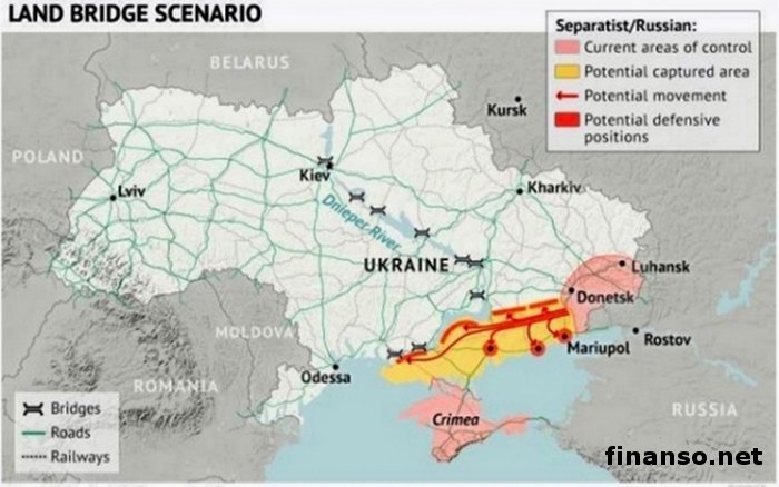 Как Россия может вторгнуться в Украину.Согласно первому сценарию, Россия может создать сухопутный мост между оккупированными территориями Донбасса и Крымом. В тексте исследования отмечается, что для того, чтобы реализовать такой сценарий, Кремлю может понадобиться одна или две недели, 24-36 тысяч военных, и еще 40-55 тысяч военных для удержания своих позиций свои позиции в случае вмешательства НАТО. Второй сценарий допускает захват всего южного побережья Украины. При этом оккупированный Донбасс может быт соединенным с Крымом и Приднестровьем. Для достижения подобной цели России придется задействовать 40-60 тысяч военных для наступления, и еще 80-112 тысяч военных для обороны. Украинской стороне будут нужны от 13,2 тысячи до 120 тысяч военных. Наконец, третий сценарий предусматривает захват РФ всей Левобережной Украины, для чего в качестве оборонительной линии будет использован Днепр. Но для того, чтобы это сделать, Кремлю придется объявить массовую мобилизацию, а это нельзя будет скрыть от мирового сообщества. Американские эксперты отмечают, что атакующие силы России для подобной опции указаны в диапазоне от 91 тысяч до 135 тысяч солдат. Чтобы содержать такую территорию, может понадобиться такое же количество военнослужащих РФ. Интервенция в Украину будет растянута на 402 км с захватом примерно 223 тысяч квадратных километров территории и 13 млн. населения. Авторитетные специалисты Stratfor, убеждены, что на самом деле Россия способна воплотить в жизнь всего первых два сценария, поскольку для реализации третьего у российского президента Владимира Путина попросту нет денег. По утверждению исследователей Stratfor, существует возможность реализации еще трех сценариев: ограниченный захват новых территорий на востоке Украины, расширение границ оккупированных территорий и временные вторжения вдоль всей линии украинской границы. В тексте доклада отмечается, что все сценарии являются возможными с технической точки зрения для РФ, но российское руководство должно учесть возможность вмешательства в ситуацию НАТО или США. |
