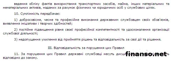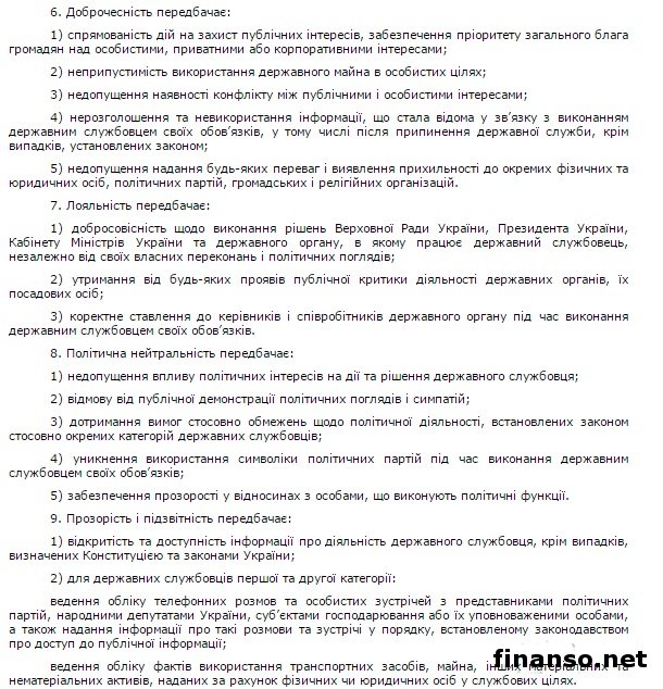 Правительство Украины требует от госслужащих воздерживаться от публичной критики органов государственной власти, а также должностных лиц, о чем говорится в постановлении Кабинета министров «Об утверждении Правил этического поведения государственных служащих» от 11 февраля (№65), обнародованном на правительственном портале 1 марта 2016 года. Как удалось выяснить корреспондентам издания «Украина сегодня: Finanso.net», согласно постановлению, государственные служащие должны соблюдать такие принципы: добросовестность, прозрачность и подотчетность, политическую нейтральность, добропорядочность, лояльность, достойное поведение, а также служение государству и обществу. Среди прочего, служение государству предполагает «формирование позитивного имиджа государства», а достойное поведение – недопущение даже вне государственной службы «поступков, которые могут навредить интересам государственной службы или негативно повлиять на репутацию государственного служащего». Содержание постановления Кабмина.В постановлении правительства говорится: «Для возможности восстановления общественного доверия к деятельности государственных органов и их должностных лиц Кабинетом министров Украины было принято решение о введении стандартов этического поведения государственных служащих. Соответствующее постановление учитывает прогрессивный и успешный опыт стран-членов Европейского союза. За основу акта взята модель обеспечения максимальной прозрачности деятельности государственных органов, введенная ранее в Республике Польша. Принятие такого акта будет способствовать недопущению давления со стороны представителей бизнеса или политических сил на должностных лиц государственных органов и, естественно, положит начало единым обязательным требованиям к стандартам этического поведения, добропорядочности в деятельности государственных служащих». Напомним, ранее перед этим директор Департамента цифровой экономики Министерства экономического развития Украины Елена Минич писала, что такие правила были созданы после публичного выступления Айвараса Абромавичуса. |