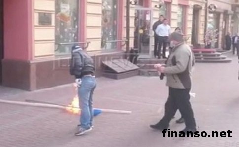 В центре Москвы неизвестные, спрятавшись за масками, сожгли флаг УкраиныКатегория: Украина