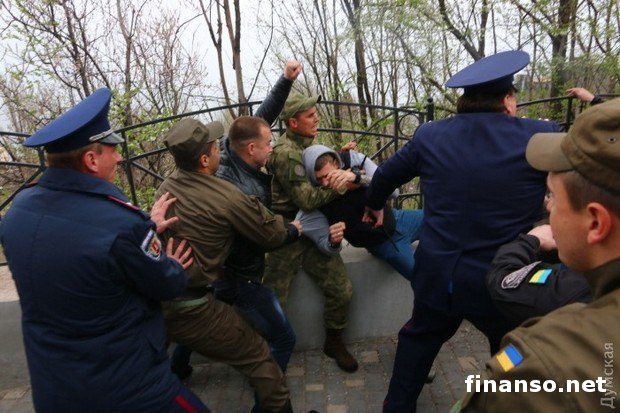 Как удалось выяснить корреспондентам издания «Украина сегодня: Finanso.net», сообщалось, что около полусотни «куликовцев» после инцидента на Аллее Славы пришли к Дому профсоюзов на Куликовом поле. К ним пыталась прорваться группа политоппонентов в камуфляже и масках. По информации, это столкновение с применением силы и спецсредств довольно эффективно было пресечено сотрудниками полиции и бойцами Нацгвардии. Сообщается, что около ста участников пророссийской акции до этого пришли в парк Т. Шевченко для участия в мемориальных мероприятиях по случаю 72-й годовщины освобождения Одессы в годы Второй мировой войны. Они направились после торжественной части к монументу Неизвестному матросу. Эти участники подняли там красные флаги, флаг города, а также баннер с призывом, касавшимся событий в Одессе 2 мая 2014 г. Один из участников акции и ее организатор, Морис Ибрагим, начал выступать перед присутствовавшими, после чего пророссийские активисты возложили цветы на Аллее Славы, обмотанные «георгиевскими ленточками». После прибытия на это же место представителей проукраинских организаций этот атрибут их возмутил, и они стали снимать ленты с букетов. Такую ленточку также сорвал с одежды «куликовца» один из проукраинских активистов. В итоге между противниками вначале произошла перепалка, а потом и драка. Двух активных участников драки доставили в Приморский отдел НП.Участников столкновения разняли правоохранители, при этом двух участников с противоположных сторон задержали и отвезли в местное Приморское отделение полиции. В полиции также рассказали, что конфликт между оппонентами продолжался на Лидерсовском бульваре, прилегающем к парку Шевченко. Однако здесь задержанных уже не было. Из источников в одесской полиции также стало известно, что были и другие «мелкие провокации». В ходе праздничного возложения цветов к монументу Неизвестному солдату, в частности, был положен букет, перевязанный лентой в цветах российского флага. То же было сделано у стелы «Крылья Победы». Сообщается, что в обоих случаях ленты-триколоры сразу убрали. |