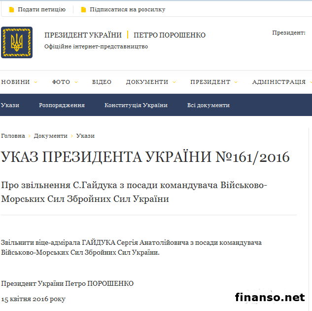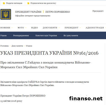 Петр Порошенко уволил с должности главу ВМС Украины ГайдукаКатегория: Украина