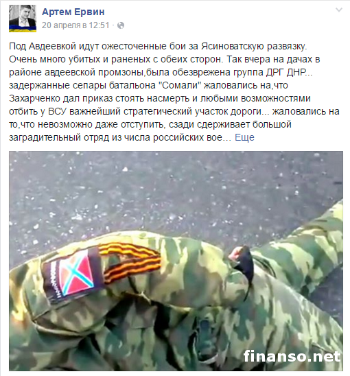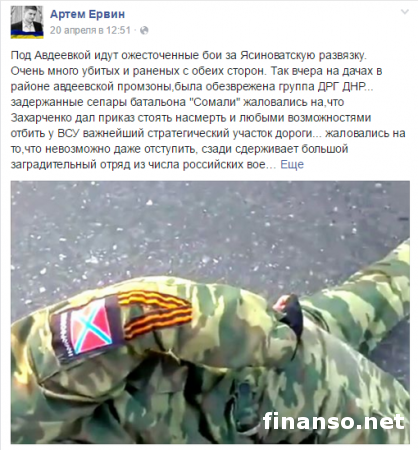 В районе авдеевской промзоны украинскими военными была обезврежена разведдиверсионная группа террористической ДНР. Попавшие в плен боевики из группировки «Сомали» рассказали о планах лидера донецких террористов Александра Захарченко. Боевики пожаловались также на своего непосредственного руководителя «Гиви». Об этом на своей странице в соцсети «Фейсбук» написал волонтер Артем Ервин. Как удалось выяснить корреспондентам новостного интернет-портала «Украина сегодня: Finanso.net», в ходе продолжающих в последние несколько месяце боев в районе Авдеевки, врагом используются все методы для того, чтобы отбить у украинских бойцов промзону города. Сообщается, что на днях разведдиверскионная группа из «Сомали» вплотную подошла к позициям ВСУ. Украинские бойцы успешно ее обезвредили. Взятые в плен террористы пожаловались на главаря группировки «Гиви» и рассказали о планах Александра Захарченко. По сообщению волонтера Артема Ервина, задержанные сепары из «Сомали» жаловались, что им дан приказ от А. Захарченко стоять насмерть и отбить у ВСУ любыми способами важнейший стратегический участок трассы. «Боевики жаловались на то, что не могут даже отступит, поскольку сзади их сдерживает крупный заградотряд из российских военных, а позади расположена самая крупная Ясиноватская ж/д станция», - сообщил в соцсети волонтер. Украинских защитников промзоны Авдеевки считают новыми «киборгами».По словам волонтера, защитников на промзоне задержанные боевики считают новыми «киборгами». По свидетельству украинских военных, террористы жаловались, что под Авдеевкой такие же вечные «киборги» с которыми они сталкивались в боях за ДАП. На передовую их загоняли под дулами автоматов, как штрафбатников, жаловались террористы, многих из них как провинившихся за мародерство и пьянство. В то же время в безопасное место слинял с передовой сам командир «Сомали» Гиви, командуя их действиями по рации, жаловались пленные боевики. Под Авдеевкой, констатируют украинские военные, ведутся интенсивные боевые действия за Ясиноватскую развязку. В этом районе за последние несколько недель, как подтверждают бойцы, очень много убитых и раненых с обеих сторон. Однако, как уверяют украинские силовики, невзирая на большие потери, они продолжают держать оборону в этом районе. |