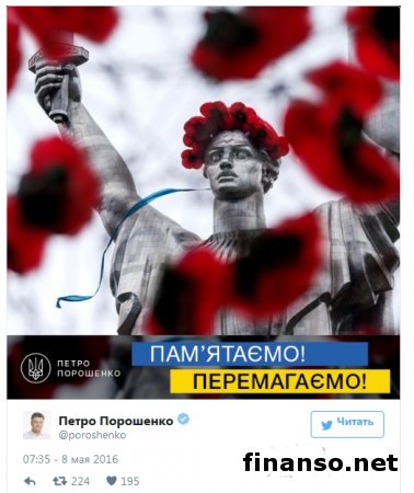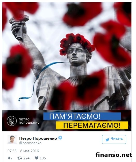 Как удалось выяснить корреспондентам новостного интернет-портала «Украина сегодня: Finanso.net», Порошенко написал в соцсети, что в День памяти и примирения нужно почтить тех, кто на протяжении долгих шести лет Второй мировой войны мечтал о первой минуте мира, наставшей 8 мая 1945 г. «Весь цивилизованный мир стремится к тому, чтобы снова не повторилась эта страшная трагедия. Помним. Побеждаем», - написал президент в соцсети. На своей странице в «Фейсбуке» президент Украины Петр Порошенко разместил трогательное видео, на котором показаны три поколения украинских военных, защищавших Украинское государство от агрессоров. В кульминационный момент отец-солдат говорит сыну-кадету: «Дед гордился бы тобой!». В комментарии к этому видео П. Порошенко написал: «Слава украинским воинам всех времен и поколений!». Президент Украины опубликовал в соцсети плакат ко Дню примирения.Кроме того, в своем микроблоге в соцсети «Твиттер» П. Порошенко опубликовал плакат ко Дню примирения, где киевская «Родина-мать» украшена ко Дню памяти. Во время открытия фотовыставки «Матери Героев», транслировавшегося одним из украинских телеканалов, украинский президент сказал, что если бы его спросили, что является самым тяжелым в работе главы государства, то он бы рассказал, что это не строгий режим, графики и тяжелые и важные решения, которые приходится принимать. «Это получение вестей с фронта о гибели наших героев. С этим я не могу спокойно мириться», - заявил Петр Порошенко. Для него, как президента, неимоверной болью отдаются известия как о потерях наших воинов, так и о гибели среди мирных людей, ставших последствием российской агрессии, пришедшей на нашу землю с оккупационными войсками в начале 2014 г. «Этот грех человекоубийства и развязанная российским агрессором война полностью лежит на них, со своими имперскими психозами и кровавыми руками развязавших эту убийственную войну», - добавил Петр Порошенко. Как известно, в нашей стране сегодня, 8 мая, отмечается День памяти и примирения, посвященный жертвам Второй мировой войны 1939-1945 гг. Красный мак второй год является новым символом победы Украинского государства во Второй мировой |