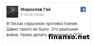 Как удалось выяснить корреспондентам новостного интернет-портала «Украина сегодня: Finanso.net», по его словам, сегодня проходит серьезное противостояние в Песках. Такого давно не было. «Это реальная война», - констатировал волонтер. ![]() М. Гай сообщил, что работает артиллерия, на подходе колонны бронетехники боевиков. Сейчас происходит их разворот в боевые порядки. Боевики также параллельно атакуют на других направлениях. «Пошла классическая заворуха», - написал находящийся на переднем крае волонтер. Чуть позже М. Гай добавил, что террористами была начата скоординированная операция. Он выразил уверенность, что украинские военный этот натиск сумеют сдержать. Ситуация в зоне АТО.По информации пресс-службы штаба АТО, за прошедшие сутки пророссийские бандформирования значительно активизировались в районе Донецка. Из пригородов и его окрестностей террористы интенсивно ведут обстрел украинских позиций у Красногоровки и Авдеевки из минометов калибра 120 мм и 82 мм, гранатометов и стрелкового оружия. Сообщается, что вблизи ДАП, у Опытного, в тыл военным ВСУ под прикрытием зенитных установок, 82-мм минометов и гранатометов пыталась прорваться разведдиверсионная группа. Попытка прорыва была вовремя обнаружена. В ходе завязавшегося боя противник был остановлен и отступил, сообщили украинские военные. В районе Зайцево на Горловско-Светлодарской дуге НВФ вели огонь по позициям украинских бойцов из станковых гранатометов и 82-мм минометов. Вблизи Луганского противник вел огонь по опорным пунктам украинских военных из гранатометов и стрелкового оружия. Не менее трех обстрелов позиций сил АТО было зафиксировано украинскими военными на Мариупольском направлении. Сообщается, что сепаратистами у Авдеевки было применено запрещенное Минскими соглашениями вооружение, в частности, артсистемы 122-мм калибра и минометы калибра 120-мм, а также танки. По информации штаба, за сутки позиции сил АТО были обстреляны 36 раз. |