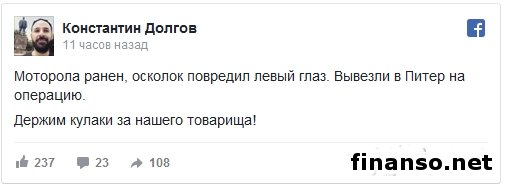 Довоевался: Моторола получил серьезное ранение в глаз и был вывезен в ПитерКатегория: Украина