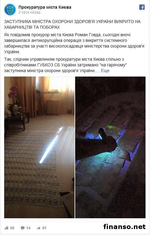 На взятке погорел заместитель главы МОЗ УкраиныКатегория: Украина